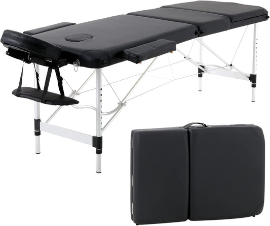 Portable Foldable Massage Bed Aluminum Frame 3 Sections Professional Spa Table (Black)
